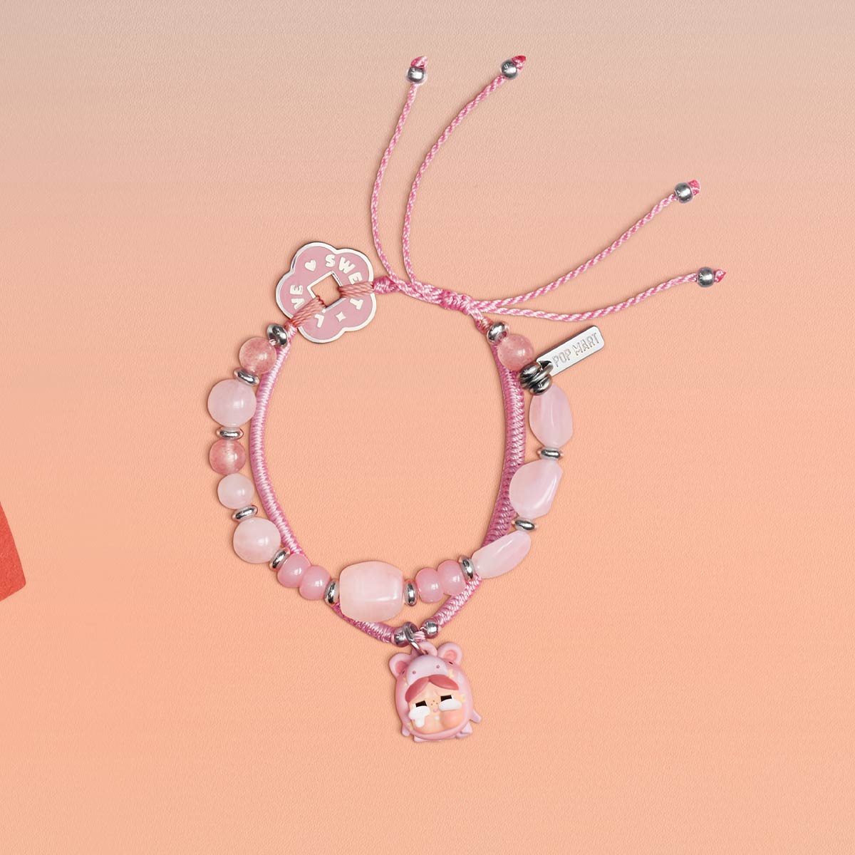 Brand: POP MART Online Release (Official Website): January 8, 2025 at 6:00 PM (PST) SIZE: The bracelet's adjustable range is: 15-22cm/5.91-8.66inches MATERIAL: Polyester / Zinc Alloy / PVC / Natural Stone / Resin / Glass / Copper Not suitable for persons under 15.